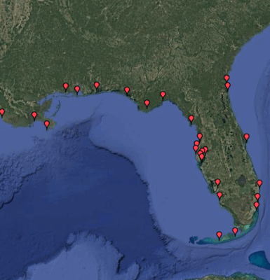 The Beach Conditions Reporting System by Mote Marine Laboratory provides condition reports for beaches and coastal recreation areas. This citizen-science program is supported by volunteer Beach Ambassadors that undergo training to make accurate condition reports. Community members can also submit reports that are validated by other users. There are several sites located along the east and west coasts of Florida, South Carolina, North Carolina, Georgia, and the Gulf coast.