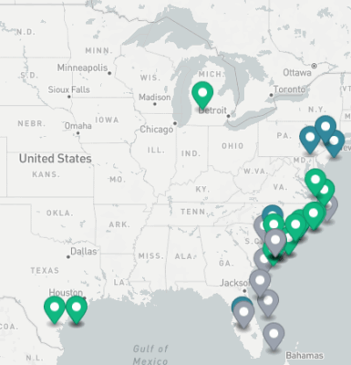 Eyes on the Storm is an interactive portal that connects you to live and past hurricane and tropical storm data. The tool pulls data from within 50 miles of a hurricane’s path and showcases the highest wind speeds and wave heights and lowest barometric pressure.
